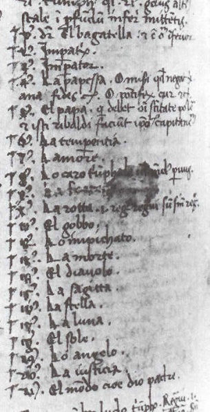of the tarot. The manuscript lists the eleventh (not ninth) card not as the Hermit but as